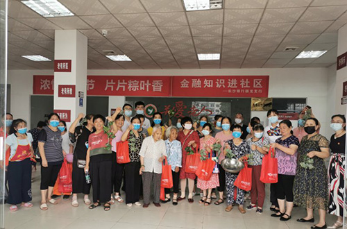 长沙银行顺龙支行主管段佳、雷世铭等一行特为老人及社区居民开展金融知识进社区,老年人防范应对非法集资的知识讲座,并为参与老人带来小礼物。